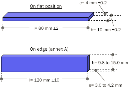 ASTM uses a standard bar 5" x ½" x ¼". ISO edgewise testing uses a bar 120mm x 10mm x 4mm. ISO flatwise testing uses a bar 80mm x 10mm x 4mm.